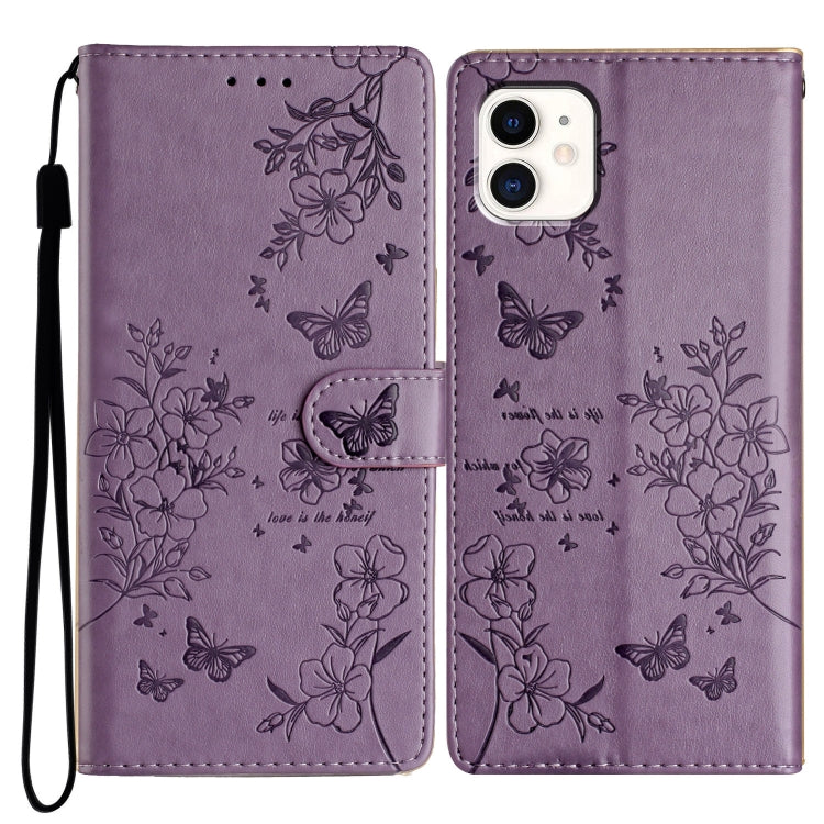 Funda para Teléfono iPhone 11 Cuero Relieve Flor de Amor y Mariposa (Púrpura)
