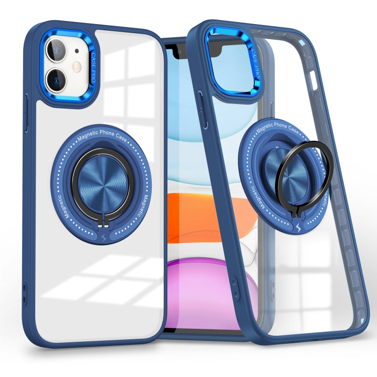 Funda para Teléfono iPhone 11 con Soporte de Anillo Giratorio Magnético (Azul Oscuro)