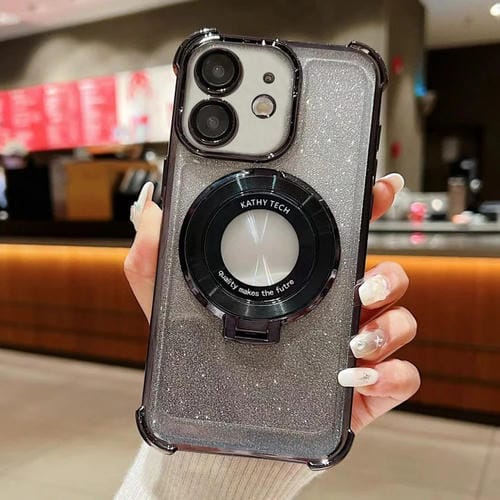 Estuche para Teléfono iPhone 11 Magsafe con Soporte Chapado en Diamantes con Brillo Degradado (Negro)