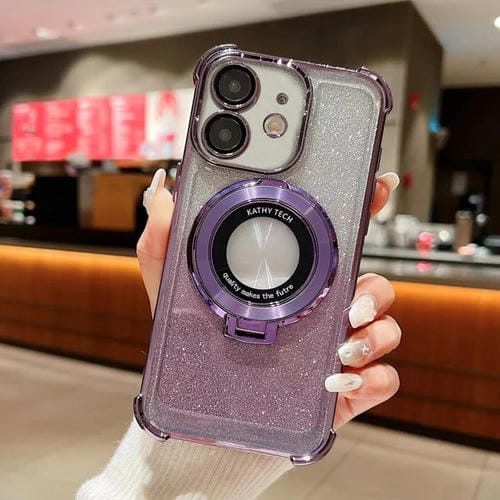 Estuche para Teléfono Magsafe iPhone 11 con Soporte Chapado en Diamantes y Brillo Degradado (Púrpura)