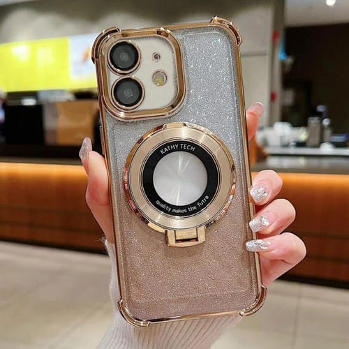 Estuche para Teléfono Magsafe iPhone 11 con Soporte Chapado en Diamantes con Brillo Degradado (Dorado)
