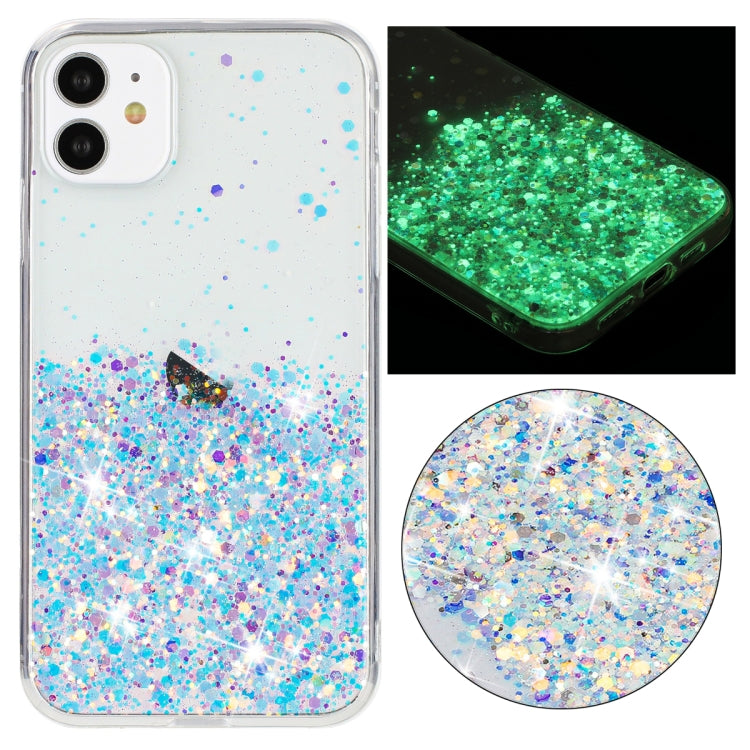 Funda para iPhone 11 TPU con Polvo de Brillo Noctilucente y Marco Transparente (Azul)