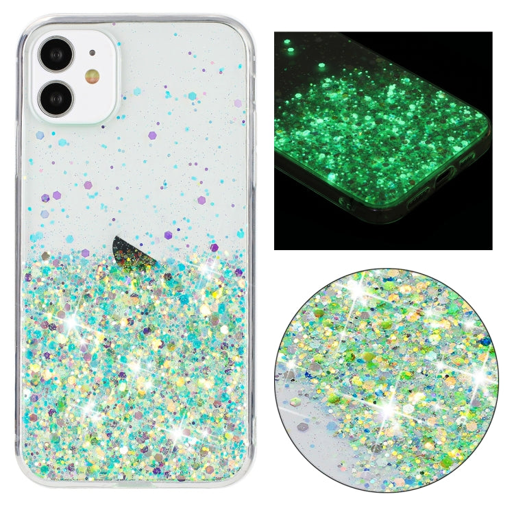 Funda para iPhone 11 TPU con Polvo de Brillo Noctilucente y Marco Transparente (Verde)