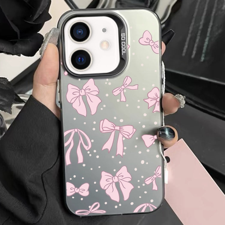 Funda híbrida para teléfono iPhone 11 TPU y PC con pintura plateada (Lazo Floral Negro)