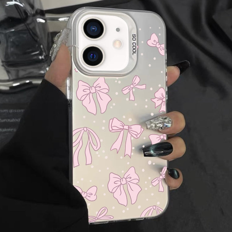 Funda híbrida para iPhone 11 TPU para PC con pintura plateada (Lazo Floral Blanco)