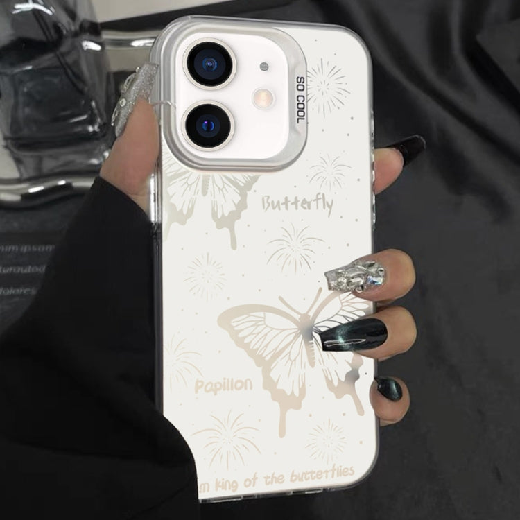Caja híbrida para iPhone 11 de TPU y PC con pintura plateada (Mariposa Hueca Blanca)