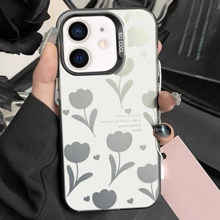 Funda Híbrida para iPhone 11 TPU y PC con Pintura Plateada y Tulipanes Huecos Negros