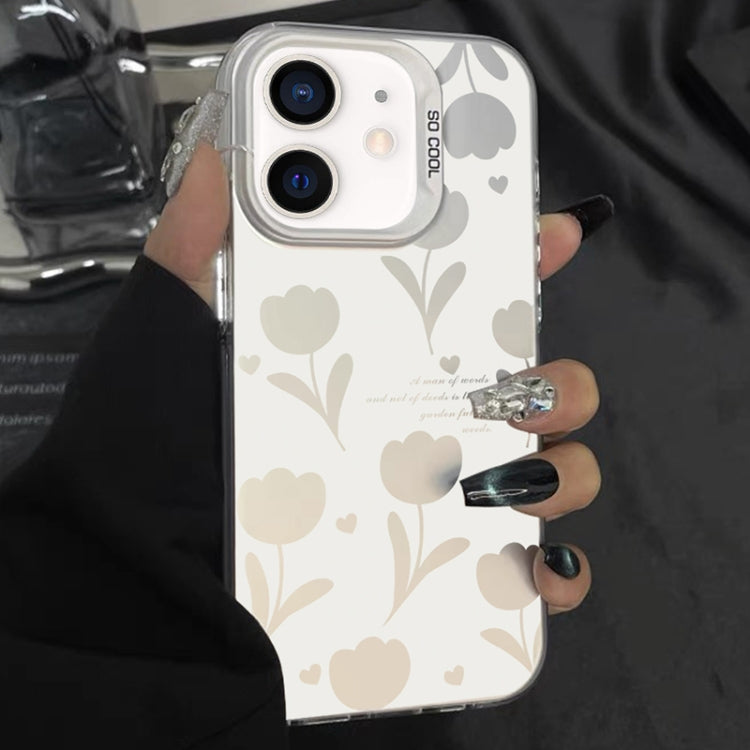 Funda híbrida para iPhone 11 TPU para PC con pintura plateada (Tulipanes huecos blancos)