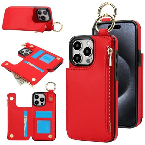 Estuche para Teléfono iPhone 11 Pro Max Rfld con Cremallera y Anillo Doble Hebilla Antirrobo (Rojo)