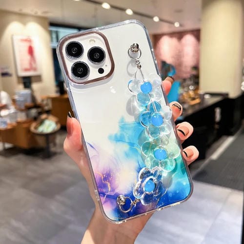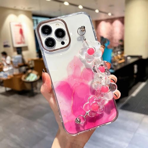 Funda para iPhone 11 Gold Halo Marble Pattern con Pulsera de Flores (Rosa)