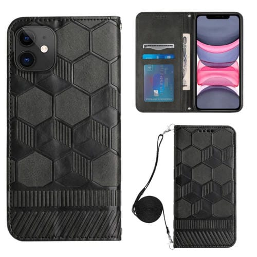 Funda para iPhone 11 Crossbody Football Texture Magnética PU Phone Case (Negro)