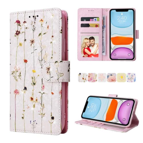 Funda de Cuero Rfid para iPhone 11 con Pintura Bronceadora (Flor Floreciente)