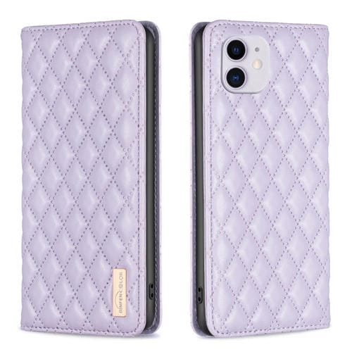 Funda para iPhone 11 Diamond Lattice Magnetic Leather Flip Phone Case (Púrpura)