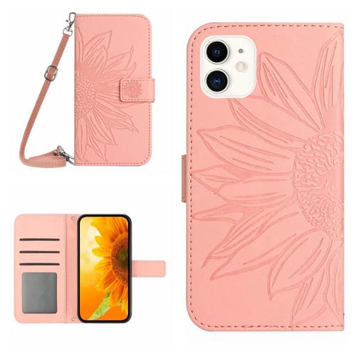 Funda Flip de Cuero para iPhone 11 Skin Feel Sun Flower Pattern con Cordón (Rosa)