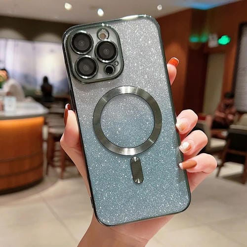 Funda para iPhone 11 Galvanoplastia Magsafe Gradient Glitter Powder (Verde Oscuro)