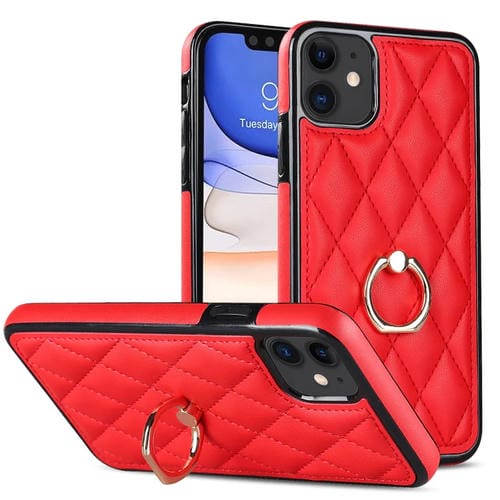 Funda de teléfono Rhombic para iPhone 11 PU Cuero con soporte para anillo (Rojo)
