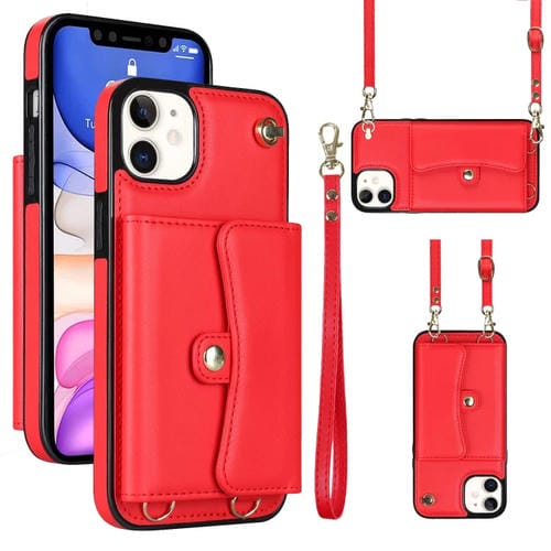 Estuche para Teléfono iPhone 11 Ranura para Tarjeta RFID con Cordón Largo (Rojo)