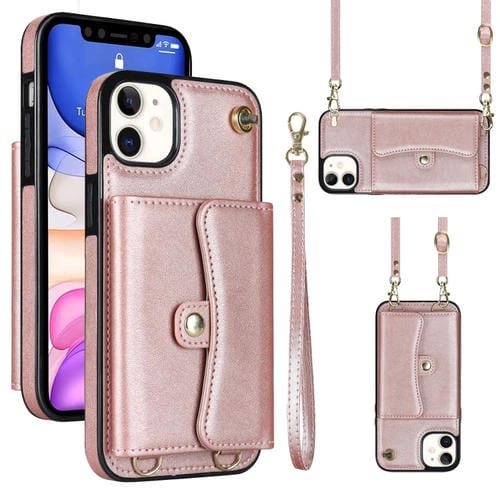 Estuche para Teléfono iPhone 11 Ranura para Tarjeta Rfid con Cordón Largo (Oro Rosa)