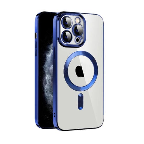 Funda para iPhone 11 Cd Textura Plating TPU Magsafe con Película de Lente (Azul Real)