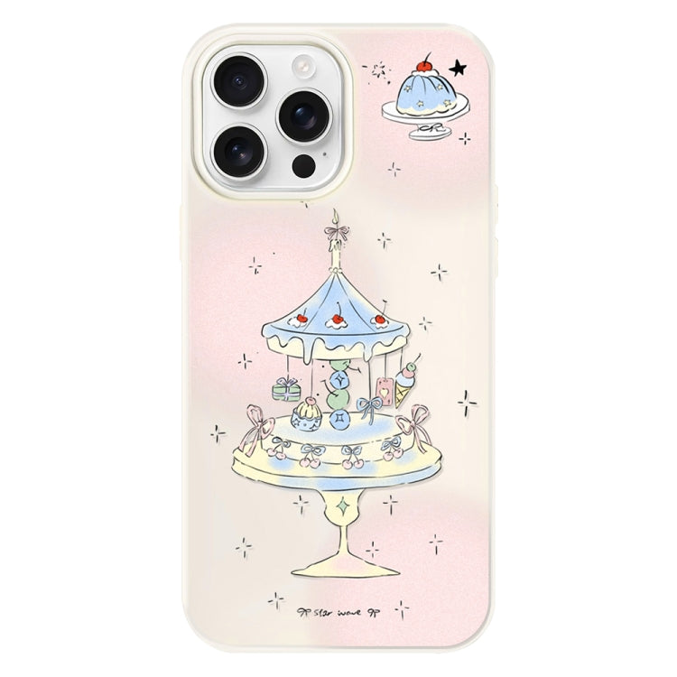 Funda híbrida TPU y PC para iPhone 16 Pro con soporte para tartas de postre (Blanco)
