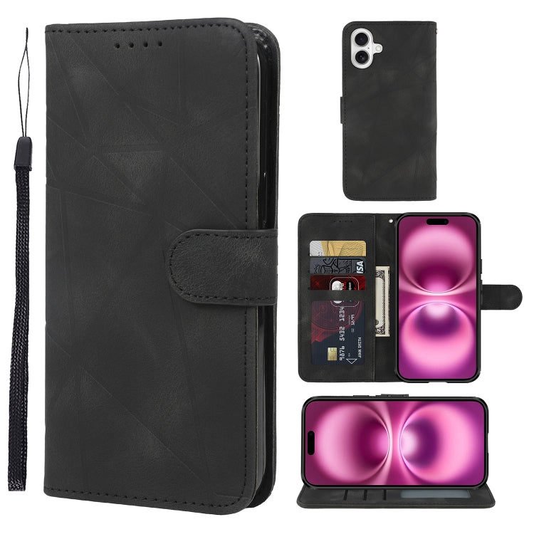 Funda de Cuero para iPhone 16 Plus Líneas Geométricas Tacto Sedoso (Negro)