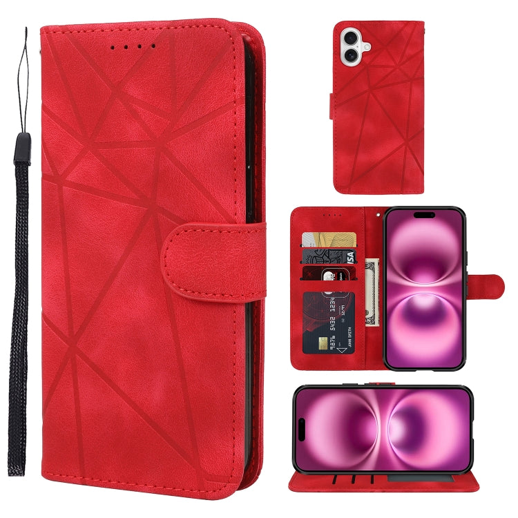 Funda de Cuero iPhone 16 Plus Líneas Geométricas Tacto Sedoso (Rojo)