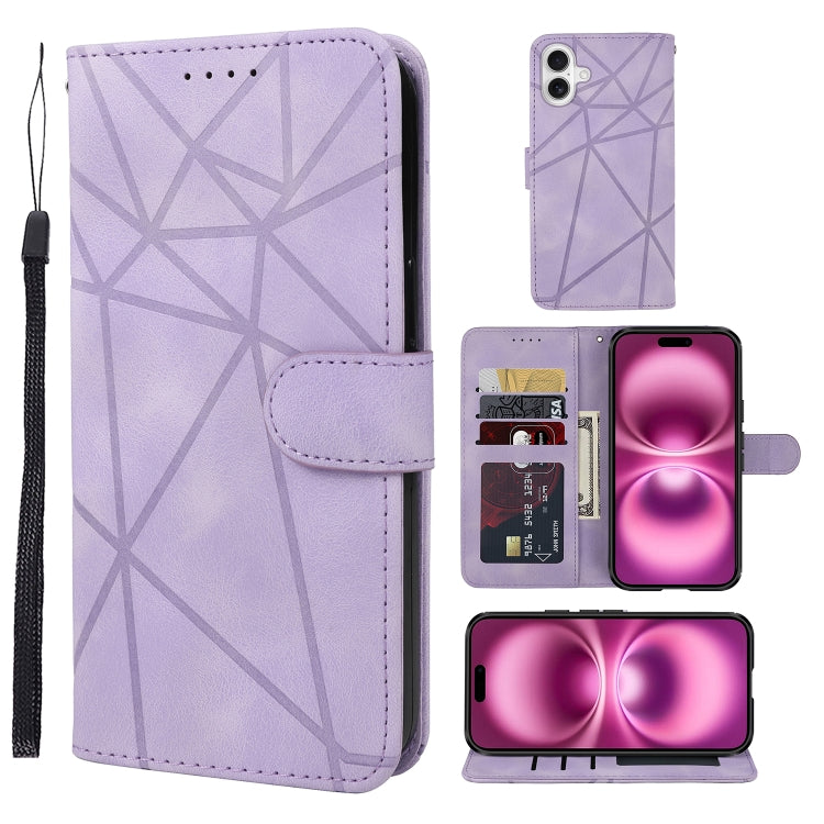 Funda de Piel iPhone 16 Plus Líneas Geométricas Tacto Sedoso (Morado)