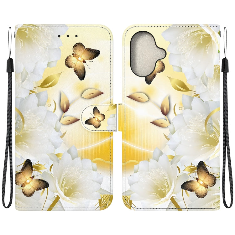 Funda de Cuero para iPhone 16 con Dibujo Coloreado y Textura de Cristal (Epiphyllum de Mariposa Dorada)