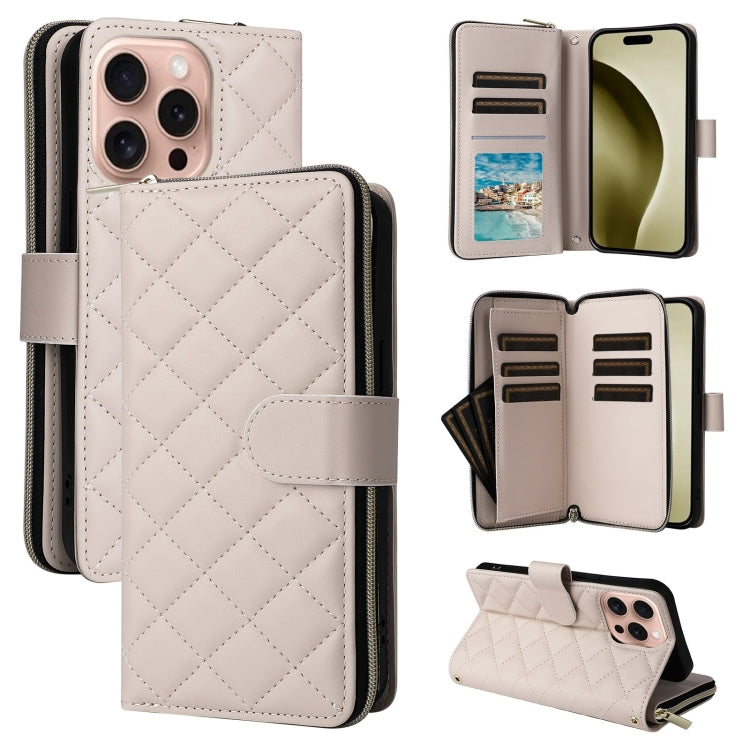 Funda para Teléfono iPhone 16 Pro Cuero con Hebilla Torre y Cremallera Rombal Cruzada (Beige)