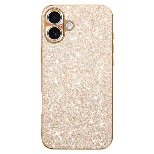 Estuche para Teléfono iPhone 16 con Anillo de Lente Textura Cd Diamante Estrella (Dorado)