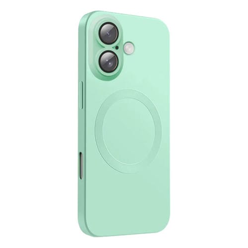 Funda de Silicona Líquida Magsafe para iPhone 16 Plus con Textura de Cd (Verde Menta)