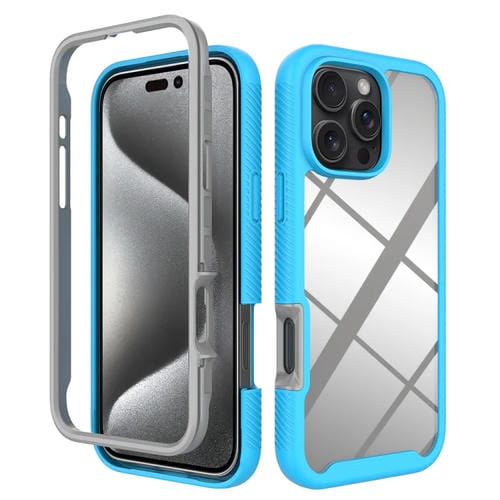 Funda para iPhone 16 Plus de PC + TPU con Película Pet en Color Sólido Starry Sky (Azul Cielo)
