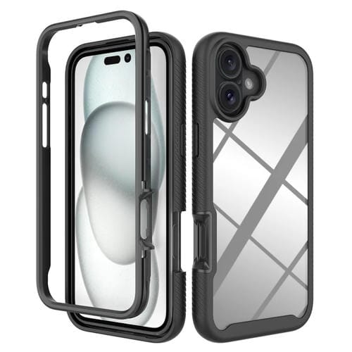 Funda para iPhone 16 Plus PC TPU con Película Pet Color Sólido Starry Sky (Negra)