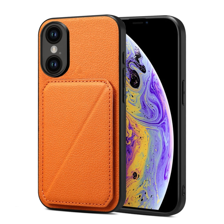 Funda Trasera para iPhone Xr de Piel de Becerro de Imitación con Soporte (Naranja)