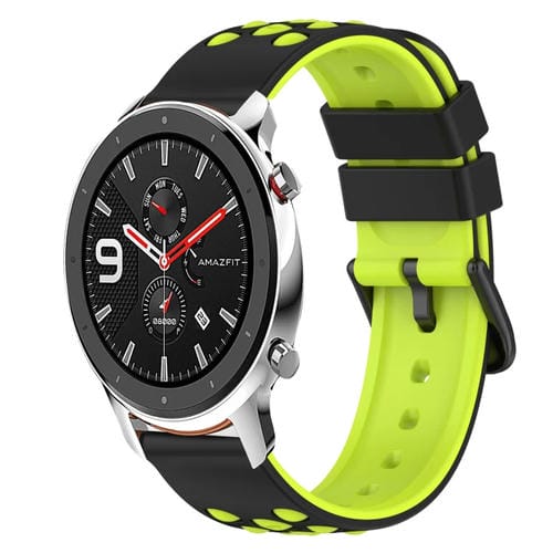 Correa de Reloj Amazfit GTR 42mm 20mm silicona dos colores transpirable (Negro + Verde Lima)