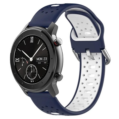 Correa de Reloj Amazfit GTR 42mm 20mm Silicona Porosa Dos Colores (Azul Medianoche + Blanco)