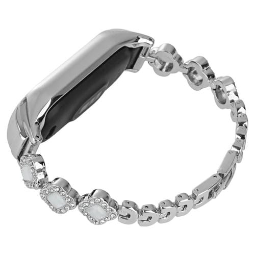 Correa de Reloj de Metal para Xiaomi Mi Band 6/5 con Diamantes y Trébol (Plateado)