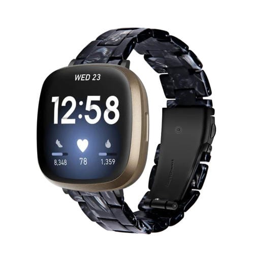 Correa de Reloj de Resina Universal para Fitbit Versa 4 y Sense 2 (Negro Brillante)