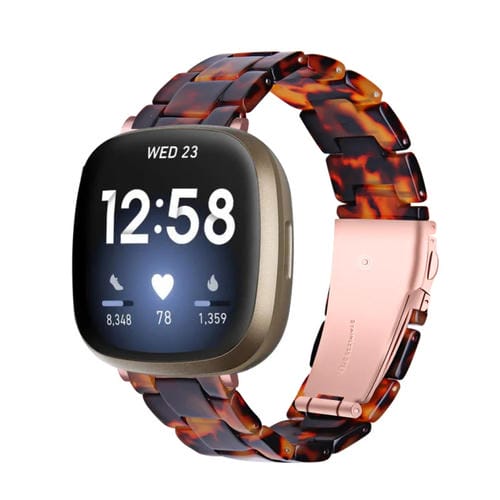 Correa de Reloj de Resina Rombo Universal para Fitbit Versa 4 y Sense 2 (Flor de Piedra de Tortuga)