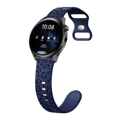 Correa de Reloj de Silicona 20mm con Hebilla 8 y Mariposa Estampado Leopardo (Azul Medianoche)
