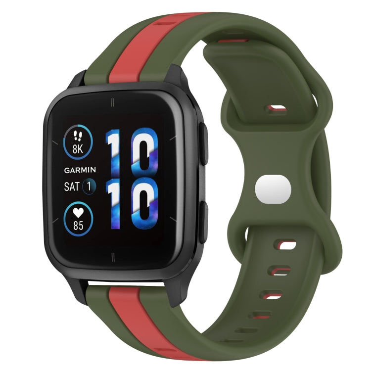 Correa de Reloj Garmin Forerunner Sq2 Music 20mm Silicona Hebilla de Mariposa (Rojo + Verde Militar)