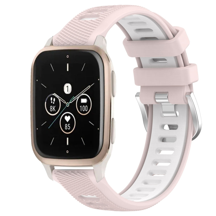 Correa de Reloj Garmin Forerunner Sq2 Music 20mm Silicona Dos Colores Hebilla Acero (Rosa + Blanco)