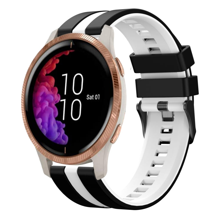 Correa de Reloj Garmin Venu Silicona Dos Colores Hebilla Mariposa 20mm (Negro + Blanco)
