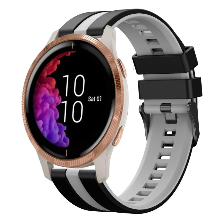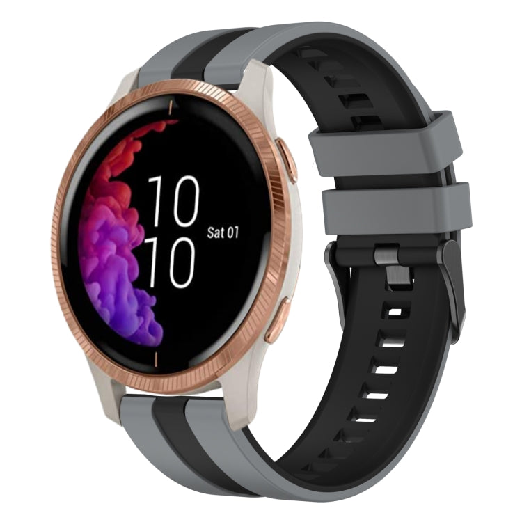 Correa de Reloj Garmin Venu Silicona Dos Colores Hebilla Mariposa 20mm (Negro + Gris)