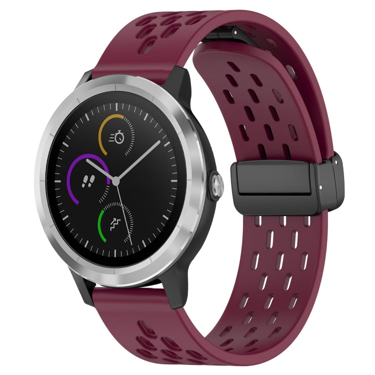 Correa de Reloj Garmin Vivoactive3 Music Silicona Cierre Magnético Plegable 20mm (Rojo Vino)