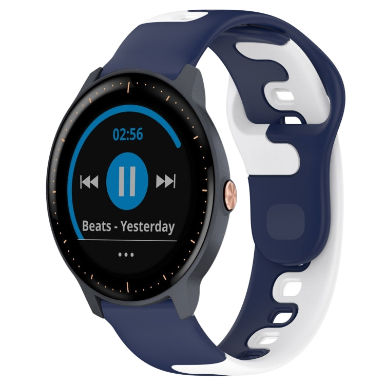 Correa de Reloj Garmin Vivoactive3 Silicona Dos Colores Bucle Convexo 20mm (Azul Medianoche + Blanco)
