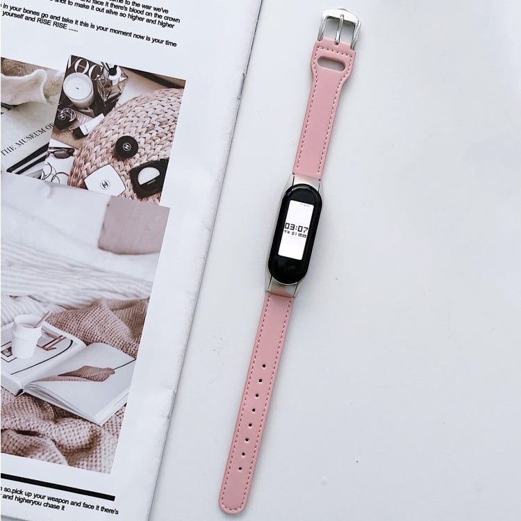 Correa de Reloj de Cuero para Xiaomi Mi Band 7 con 8 Hebillas (Rosa)