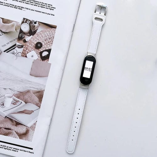 Correa de Reloj de Cuero para Xiaomi Mi Band 7 con 8 Hebillas (Blanco)
