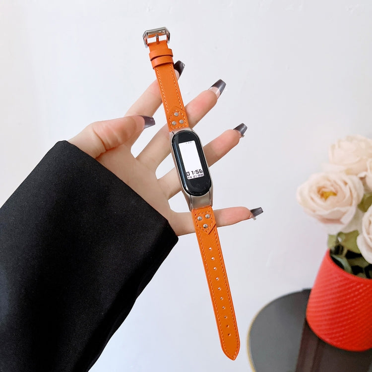 Hebilla Correa de Reloj de Cuero Genuino para Xiaomi Mi Band 7 (Naranja)