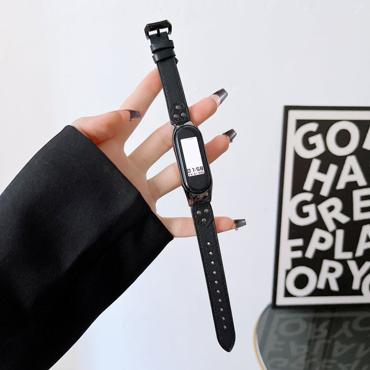 Correa de Reloj de Cuero para Xiaomi Mi Band 7 con 8 Hebillas (Negro)